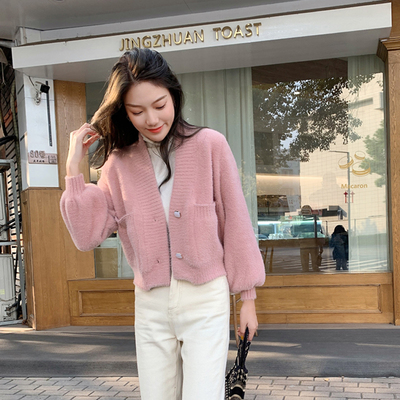Imitation mink sweater cardigan women's autumn thickened short short short short man's loose, lazy and fairy knitted coat