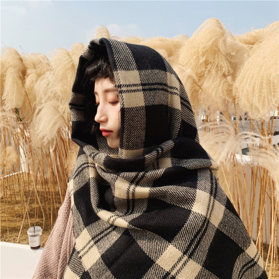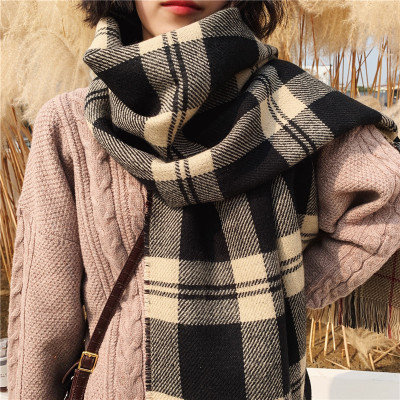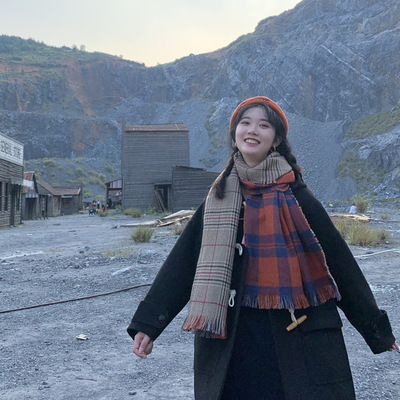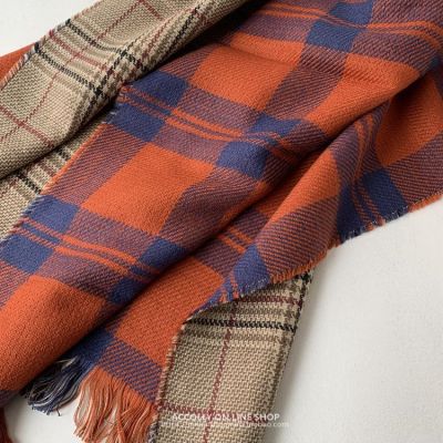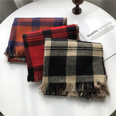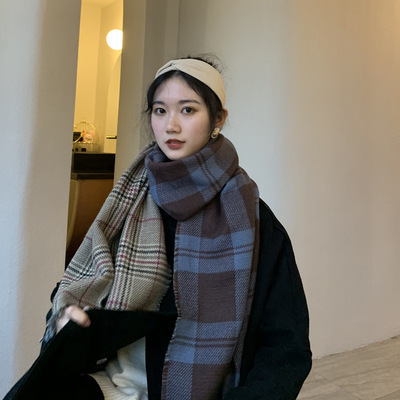 Double sided plaid scarf in winter women's retro fashion to keep warm