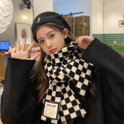 Chessboard Plaid spring and autumn knitted scarf women's winter Korean version warm and versatile student Plaid shawl Bib