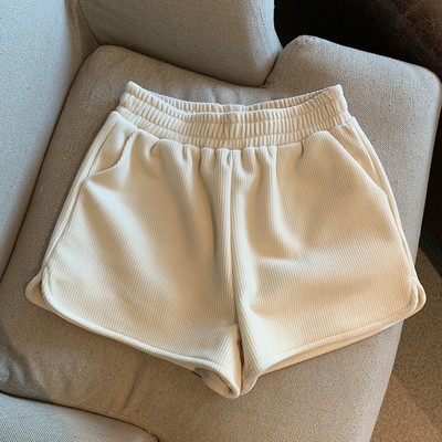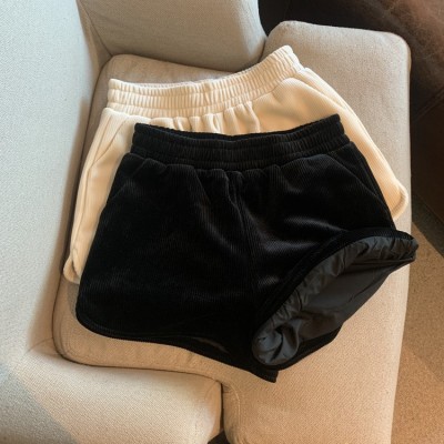 Real shooting real price autumn and winter versatile baby velvet pit stripe split shorts hot girl hot pants boots pants