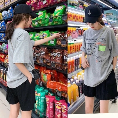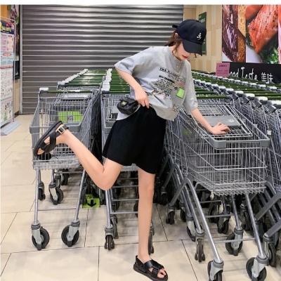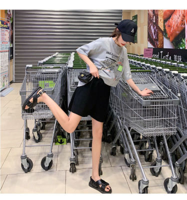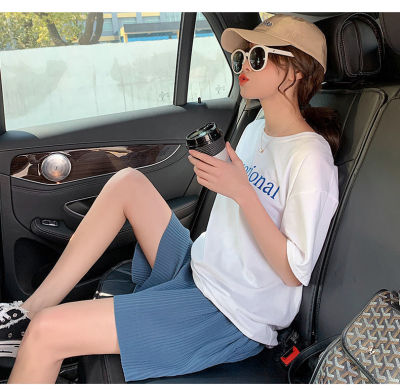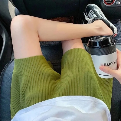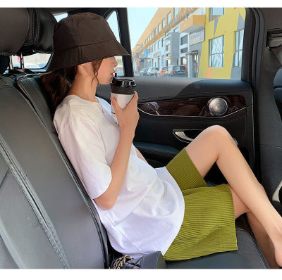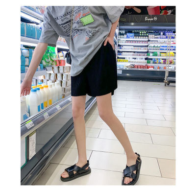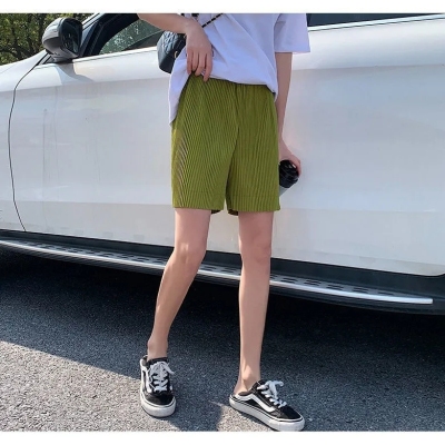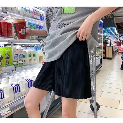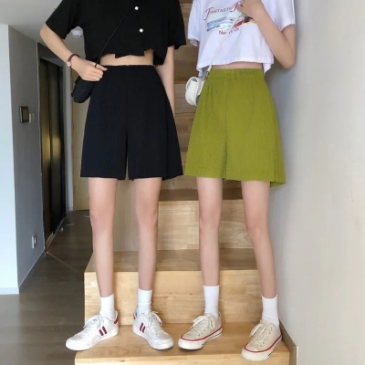 Summer new high waist large pleated wide leg shorts solid color versatile pants women's Korean casual sports skirt pants