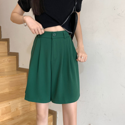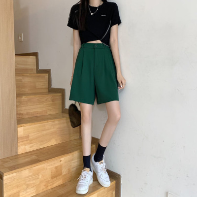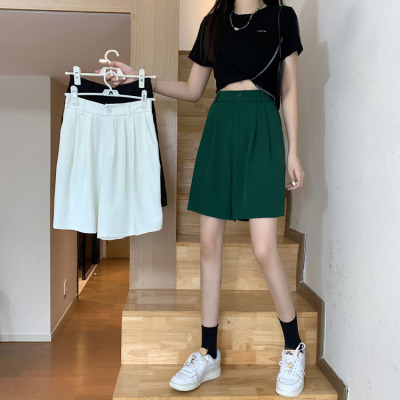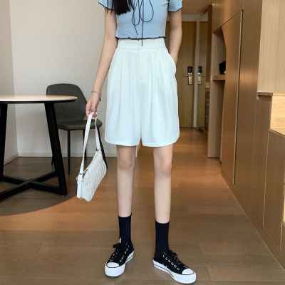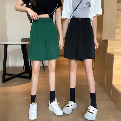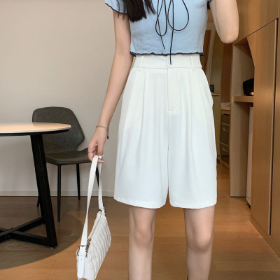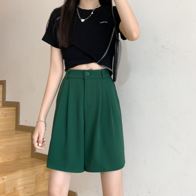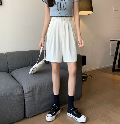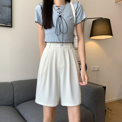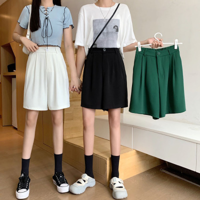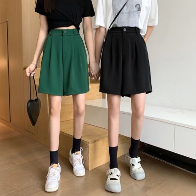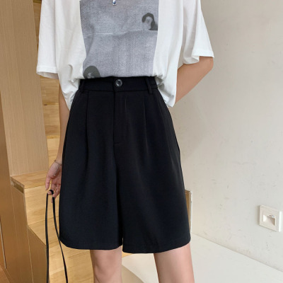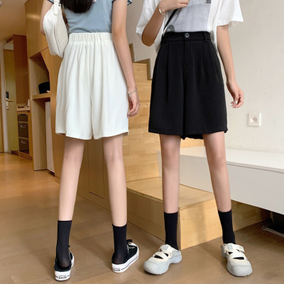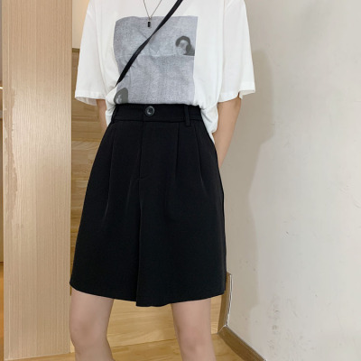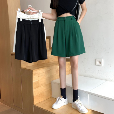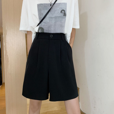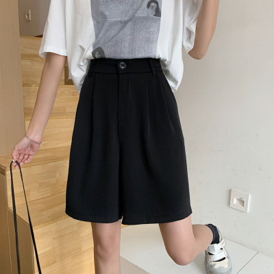 Black Shorts New Summer High Waist thin hanging feeling wide leg Capris straight casual pants women's sportswear pants