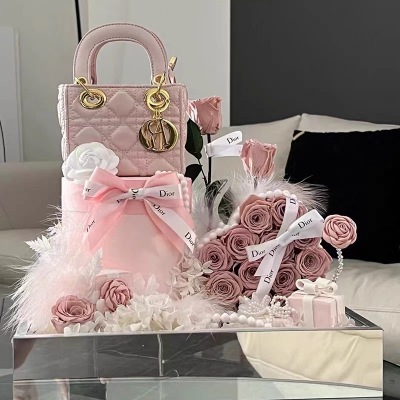 Preserved Flower Haute Couture Small Fragrant Pink Bag 27*18*25 $4680