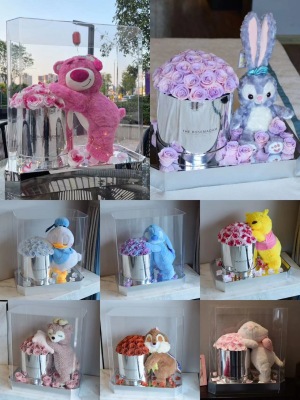 Preserved Flower Hug Bucket with Chichititi Premium Acrylic Box $8980