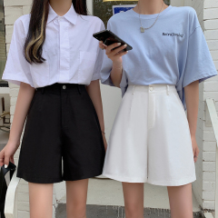 Real shooting Korean version of the new loose and thin suit pants, wide legs, High Waist Shorts, hot pants, belt delivery